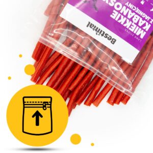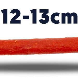 Długość ok. 12–13 cm i elastyczna struktura sprawiają, że kabanosy są łatwe do żucia i można je łatwo podzielić na mniejsze kawałki – idealne na spacer, trening lub jako szybka nagroda.
