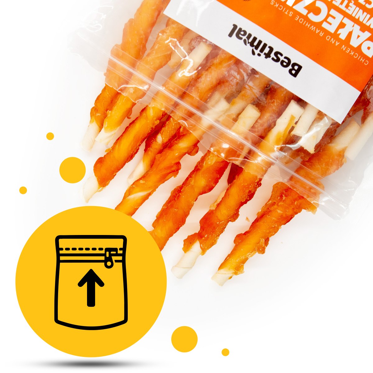 Bestimal Pałeczki owinięte mięsem kurczaka to przysmak, który Twój pupil pokocha od pierwszego kęsa!