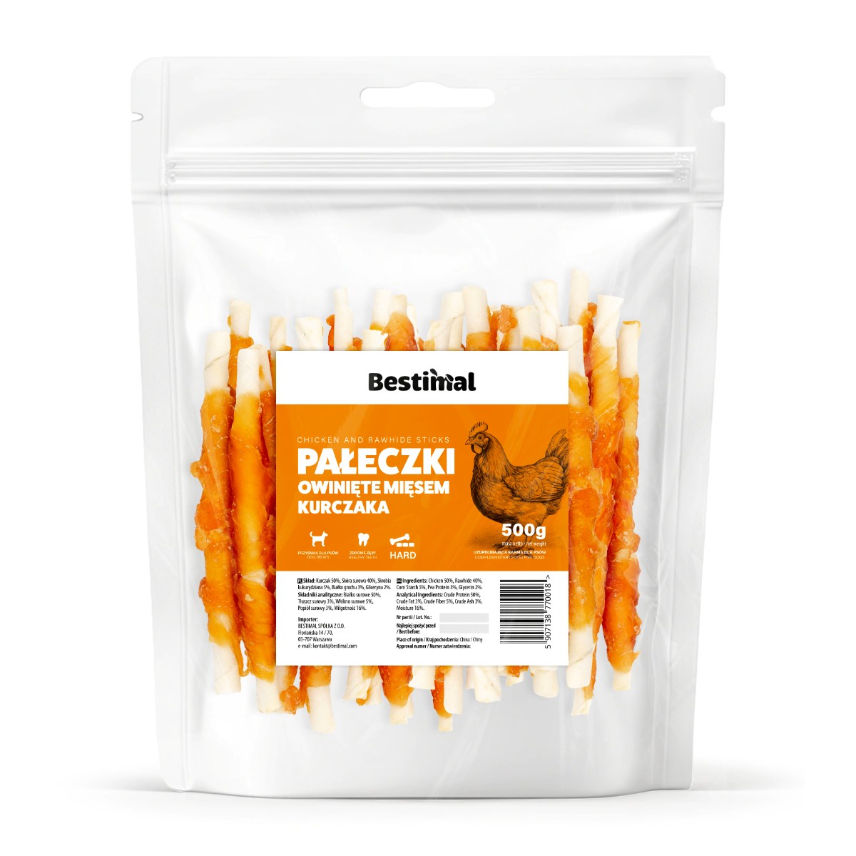 Przysmak dla psa – Pałeczki owinięte mięsem kurczaka 500g BESTIMAL