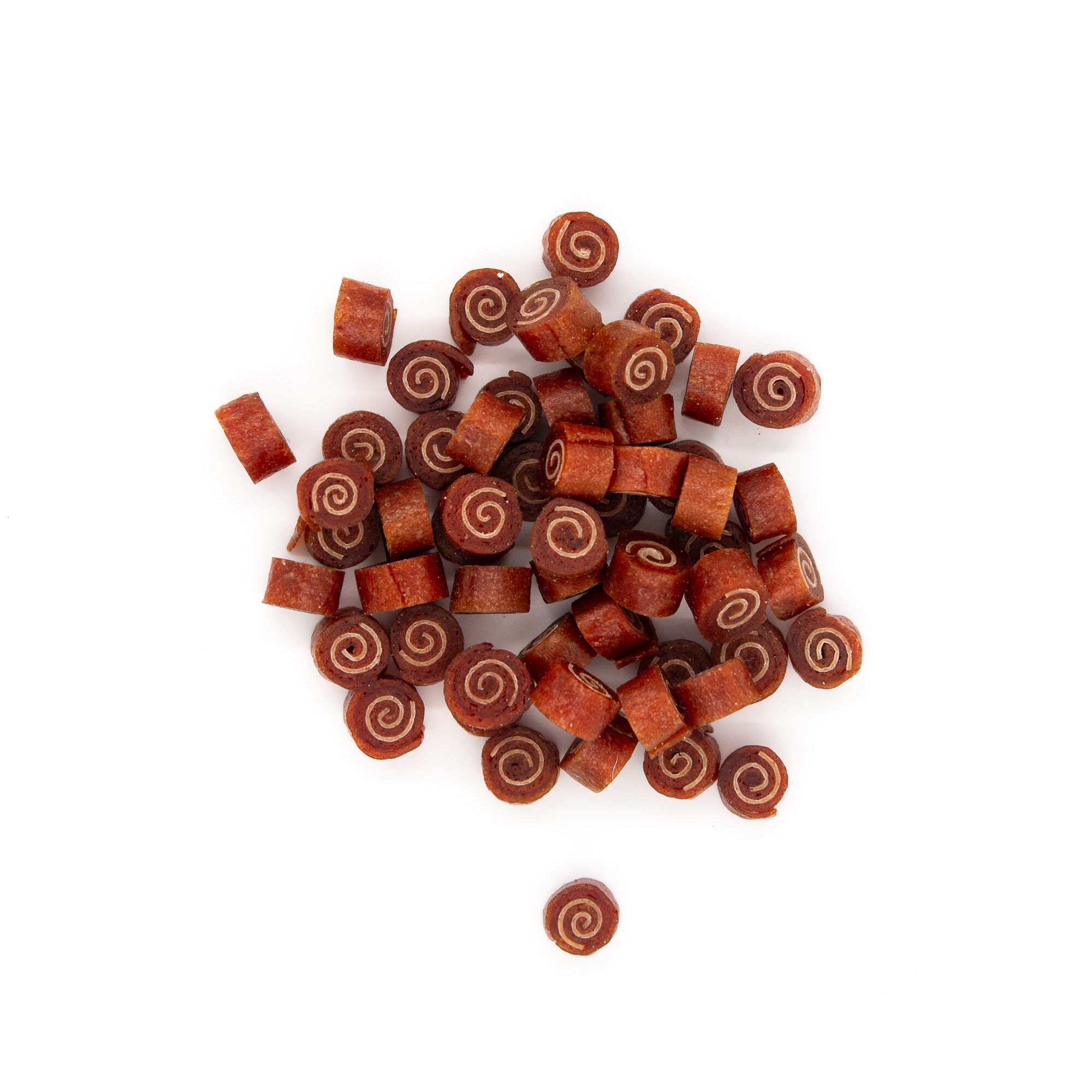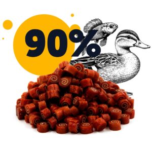 Miniaturowe, miękkie roladki z mięsa kaczki i dorsza – wyjątkowo smakowita przekąska w formie sushi, idealna do nagradzania i rozpieszczania psa.