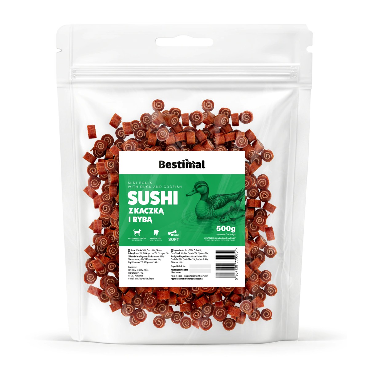 BESTIMAL Miękkie sushi z kaczki i dorsza – idealne dla każdego psa!✨