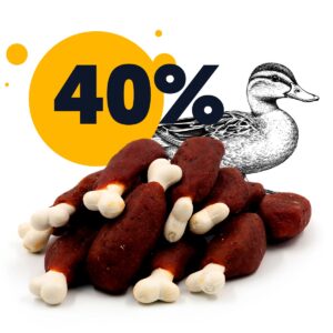 Smaczny i aromatyczny przysmak z mięsem kaczki – idealny do nagradzania, urozmaicenia codziennej diety i sprawienia psu prawdziwej radości.