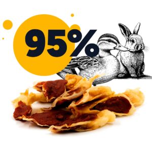 ⭐️Wysoka smakowitość i różnorodność – Mięso z królika i kaczki ma wyjątkowy aromat i naturalną smakowitość, dzięki czemu doskonale sprawdza się jako nagroda lub motywacja w treningu. Połączenie tych mięs urozmaica dietę psa i zapobiega nudzie żywieniowej.